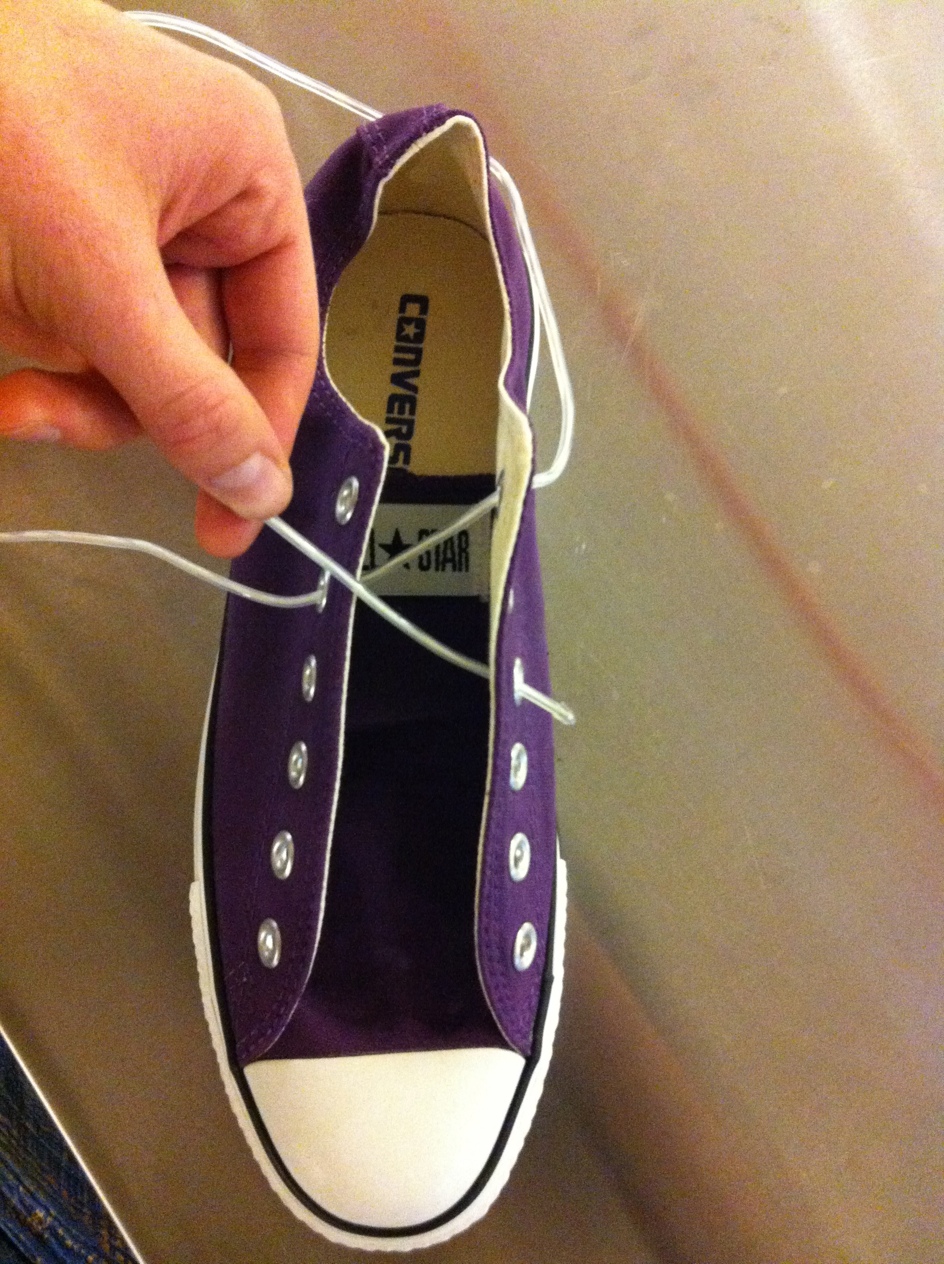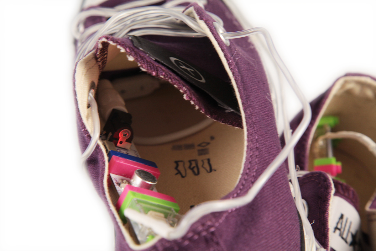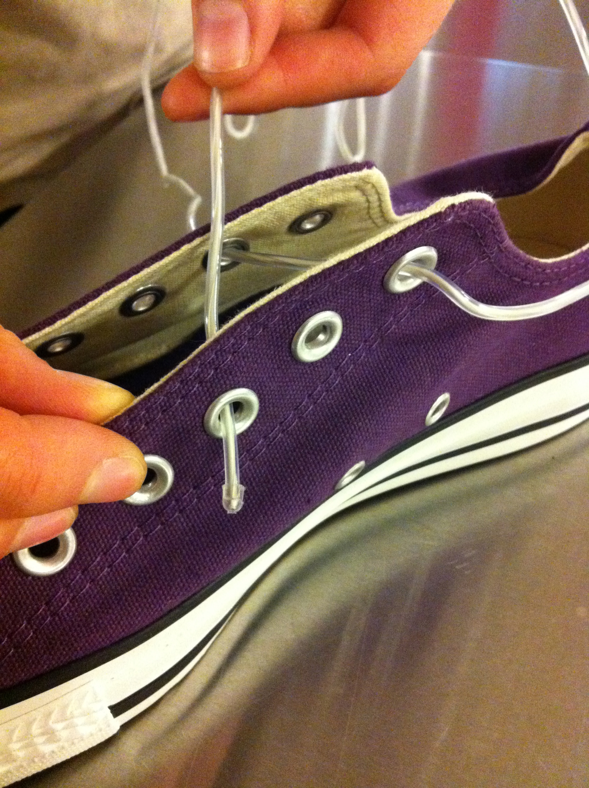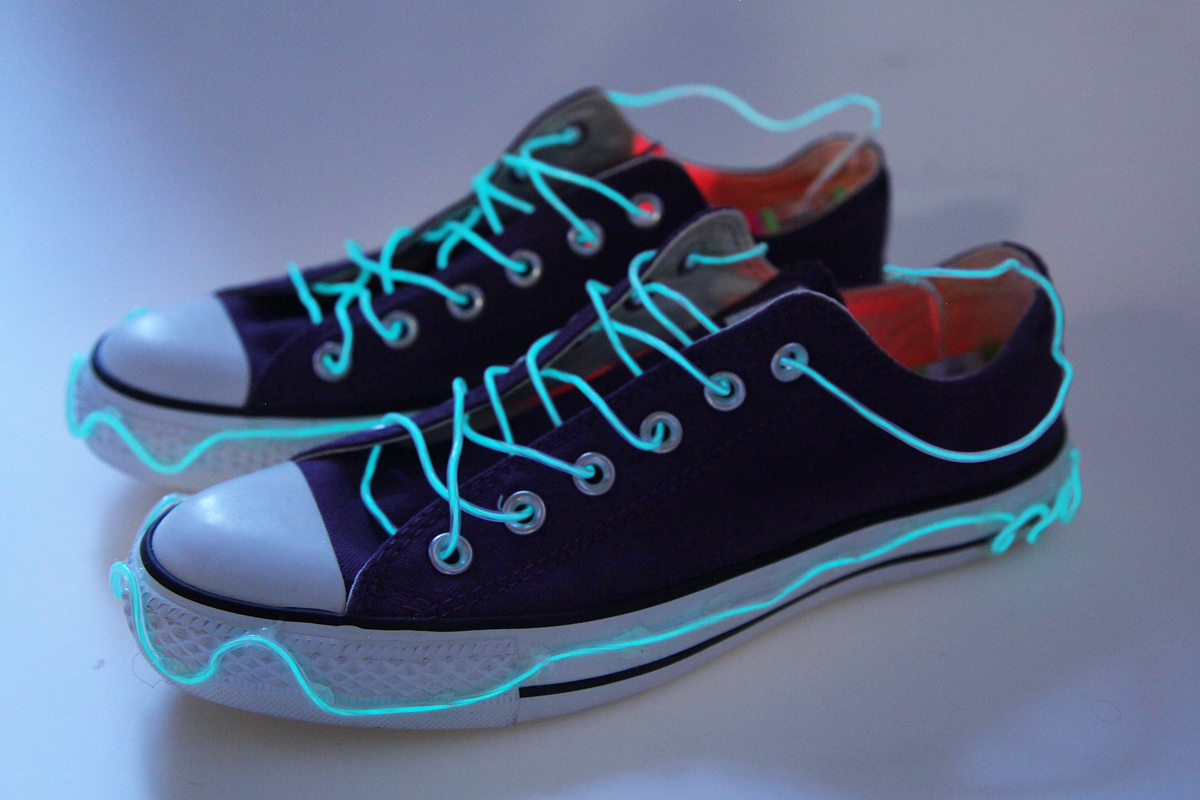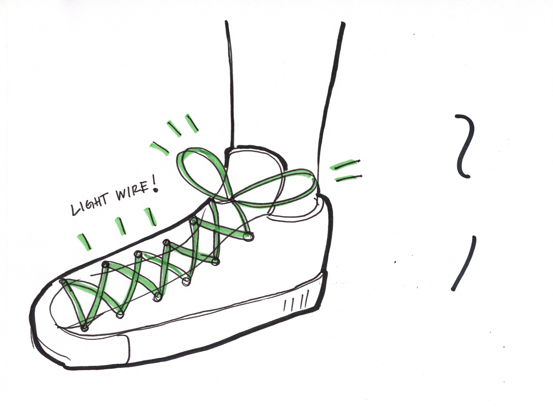 Weave the light wire through the holes. Use tape when needed. What other clothing can you attach the light wire to?